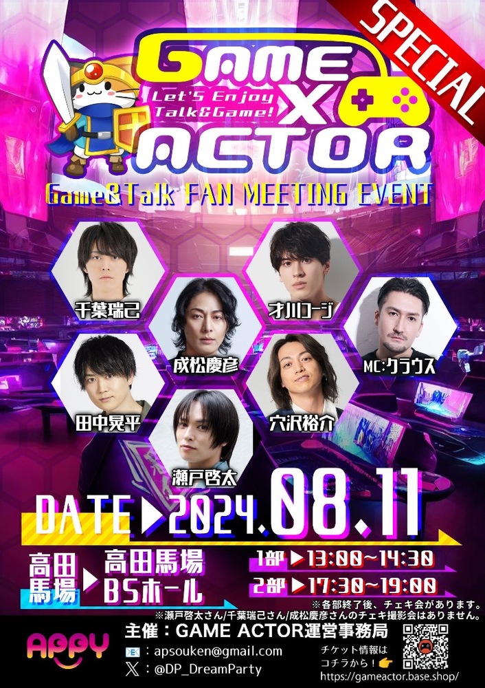 GAME×ACTOR SCHEDULE 2024/08/11(日) GAME×ACTOR 【日程】2024年8月11日(日) 【会場】高田馬場BSホール 【出演】 画像ご覧ください URLをコピーする 報告する